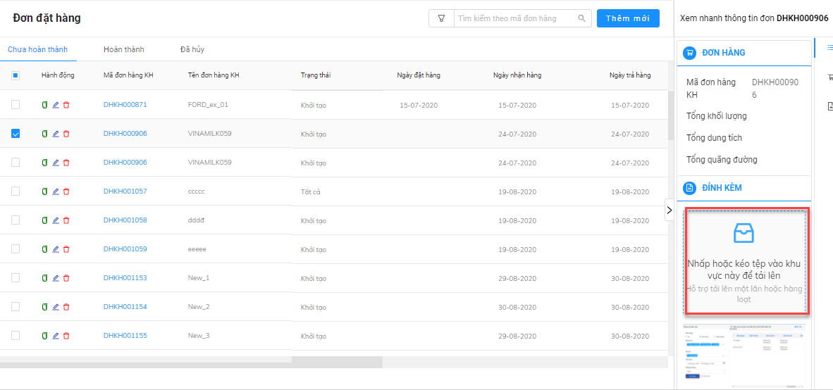 - Trên web khách hàng: Cho phép khách hàng (chủ hàng) từ phân hệ web của mình, có thể upload các hình ảnh, tệp đính kèm theo đơn hàng lên phần mềm.